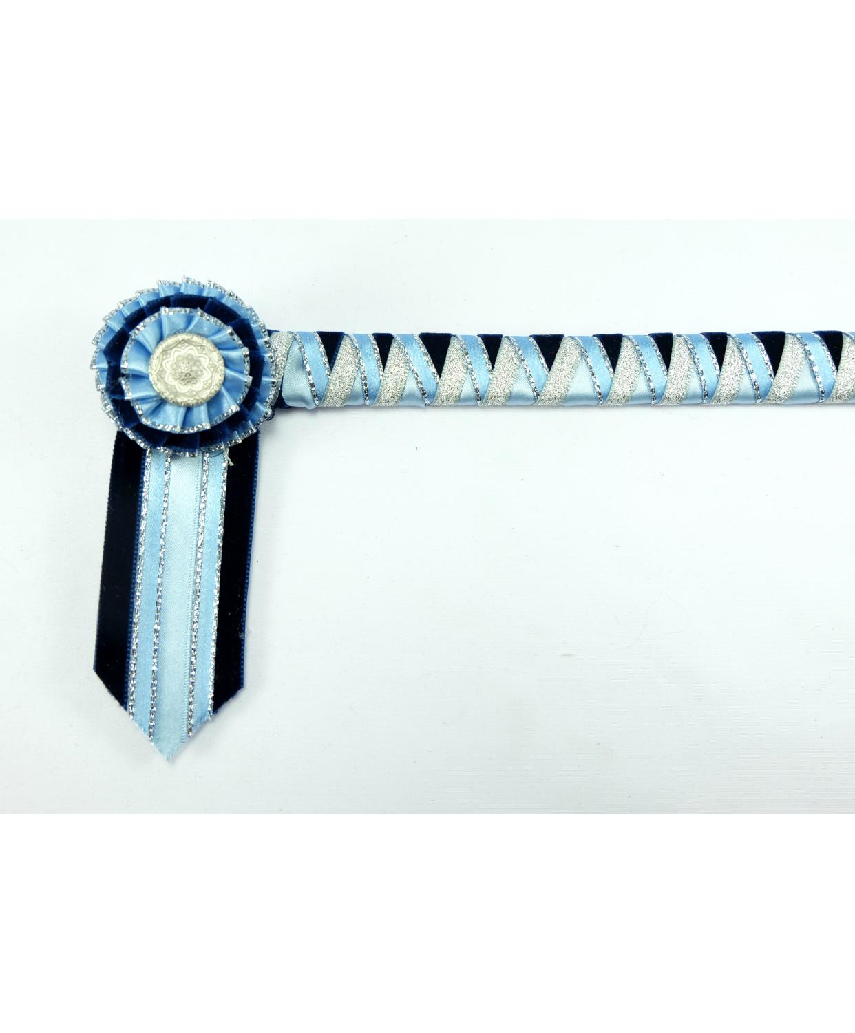 Featuring metallic edged ribbon, three-layered rosettes and V-shaped tabs, the Matlock Browband is an exceptional ShowQuest design. Hand-plaited using velvet and satin ribbons on 3/4″ (19mm) leather in a sharks tooth design.